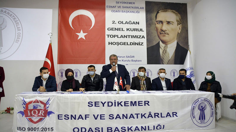 Seydikemer Esnaf Odası Genel Kurul toplantısı yağmurlu havaya rağmen yoğun bir katılıma sahne oldu. Başkan Harun Sağır’ın güven tazelediği toplantıya çok sayıda davetli ve esnaf odası üyesi katıldı. Kuruluş genel kurul toplantısı ile birlikte üçüncüsü yapılan Seydikemer Esnaf ve Sanatkarlar Odası Olağan Genel Kurulunda seçimler mevcut başkan Harun Sağır’ın başkan adaylığında tek liste ile yapıldı. Katılım ve ilginin yoğun olması esnafların odaya ve mevcut yönetime sahip çıktığının göstergesi oldu. Açılış konuşması ile başlayan genel kurul toplantısında başkan Harun Sağır faaliyet raporunu sundu. Denetim kurulu raporu ve verilen önergeler oybirliği ile kabul edildi. Muğla Ticaret İl Müdürü Gülşah Yalçınkaya, Muğla Milletvekilleri Salih Erbay ve Metin Ergün, Seydikemer Belediye Başkanı Yakup Otgöz selamlama konuşmaları yaptı. Konuşmaların ardından söz alan Seydikemer Esnaf ve Sanatkarlar Odası başkanı Harun Sağır katılanlar davetlilere ve üyelere teşekkür etti. Sağır konuşmasında; “coşkuyla devam eden bu genel kurulumuz ve yapılan konuşmalar gösterdi ki biz gerçekten çok büyük bir meslek kuruluşuyuz. Bölgemiz için önemli bir sivil toplum kuruluşuyuz. Değerini bir kez daha hissettiğimiz odamızın Seydikemer için geldiği bu güzel noktadan dolayı mutluyuz. Sevincimizi sizlerle paylaşacağız. Çünkü, 2014 yılında başladığımız çalışmalarımızda, 2018 yılında büyüyerek devam ettiğimiz çalışmalarda da hep sizlerden aldığımız güç ve destek ile yürüdük. Bundan sonra da daha iyisi, daha güzeli için yürümeye ve hatta koşmaya devam edeceğiz” dedi.